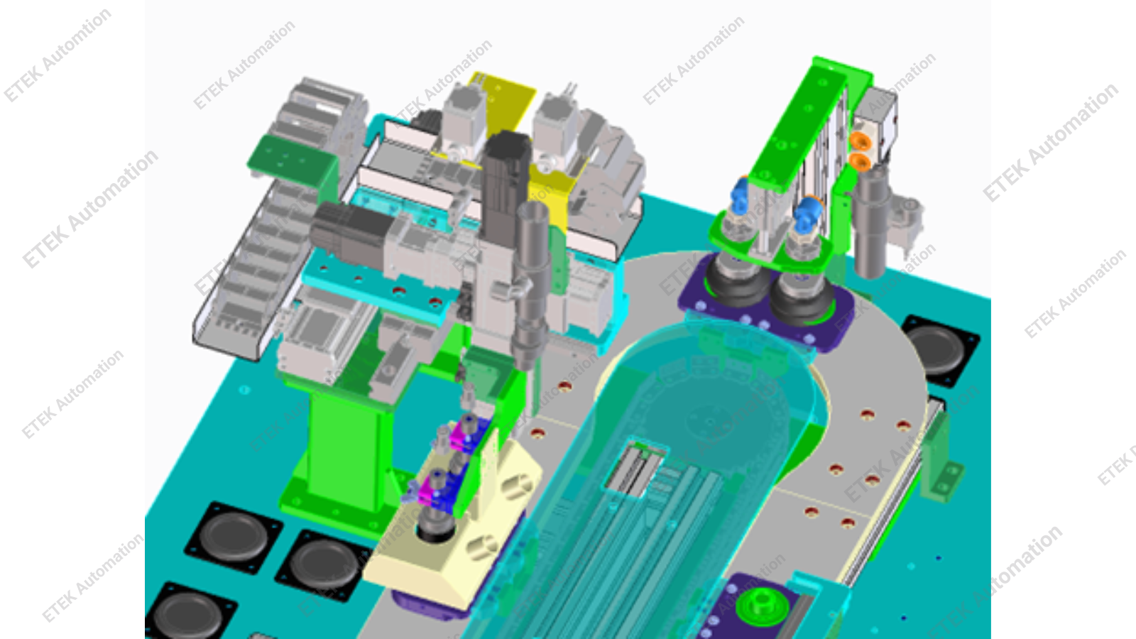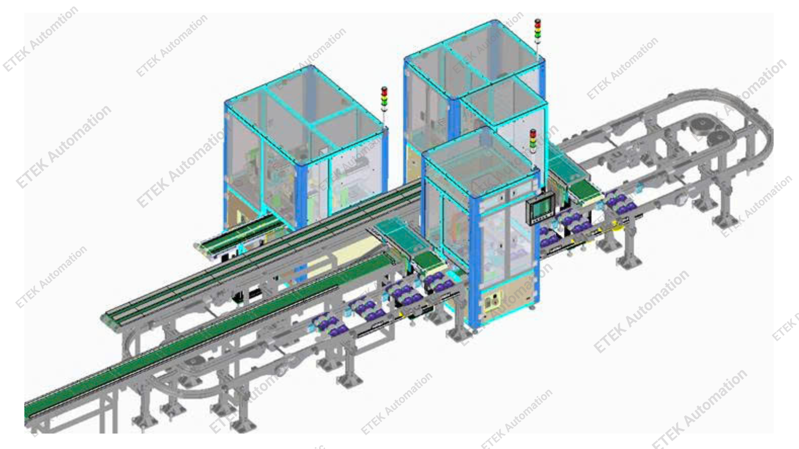 Ứng dụng robot tốc độ cao tích hợp thị giác máy tính (machine vision), cụm này di chuyển chi tiết linh hoạt giữa các công đoạn, vừa đảm bảo độ chính xác khi định vị, vừa tối ưu nhịp sản xuất. Nhờ đó, toàn bộ hệ thống duy trì được sự ổn định, đồng bộ và giảm thiểu rủi ro tắc nghẽn tại từng điểm nút